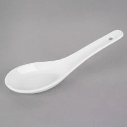 Acopa 0.6 Oz. Bright White Ceramic Chinese Soup Spoon / Asian Wonton Soup Spoon – 12/Pack