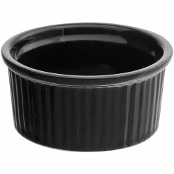 Acopa 4.5 Oz. Glossy Black Fluted Stoneware Ramekin – 48/Case