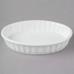 Acopa 6 Oz. Oval Bright White Fluted Porcelain Souffle / Creme Brulee Dish – 12/Pack