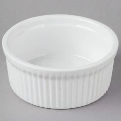 Acopa 10 Oz. Round Bright White Fluted Porcelain Souffle / Creme Brulee Dish – 24/Case