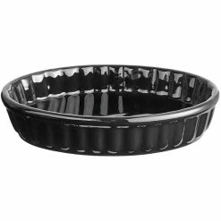 Acopa 5 Oz. Oval Glossy Black Fluted Stoneware Souffle / Creme Brulee Dish – 12/Pack