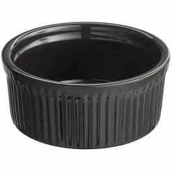 Acopa 10 Oz. Round Glossy Black Fluted Stoneware Souffle / Creme Brulee Dish – 24/Case