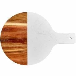 Acopa 16″ X 5″ Acacia Wood And White Marble Serving Board With Handle
