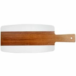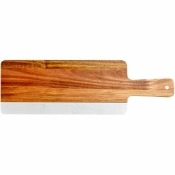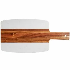 Acopa 19″ X 6″ Acacia Wood And White Marble Serving Board With Handle