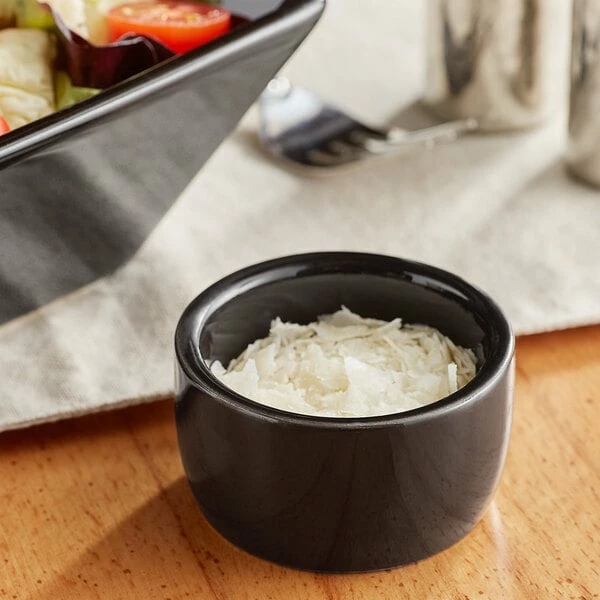 Acopa 2 Oz. Glossy Black Smooth Stoneware Ramekin – 48/Case