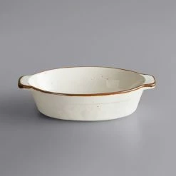 Acopa Keystone 18 Oz. Vanilla Bean Stoneware Oval Baker / Casserole Dish – 6/Case