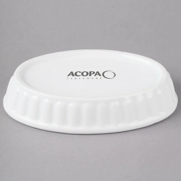Acopa 6 Oz. Oval Bright White Fluted Porcelain Souffle / Creme Brulee Dish – 12/Pack