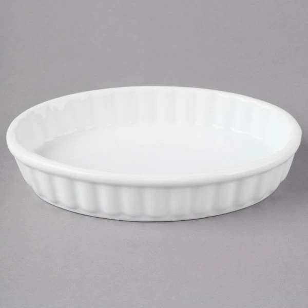 Acopa 6 Oz. Oval Bright White Fluted Porcelain Souffle / Creme Brulee Dish – 36/Case