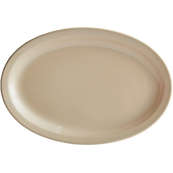 Acopa Foundations 11 1/2″ X 8″ Tan Narrow Rim Melamine Oval Platter – 12/Case