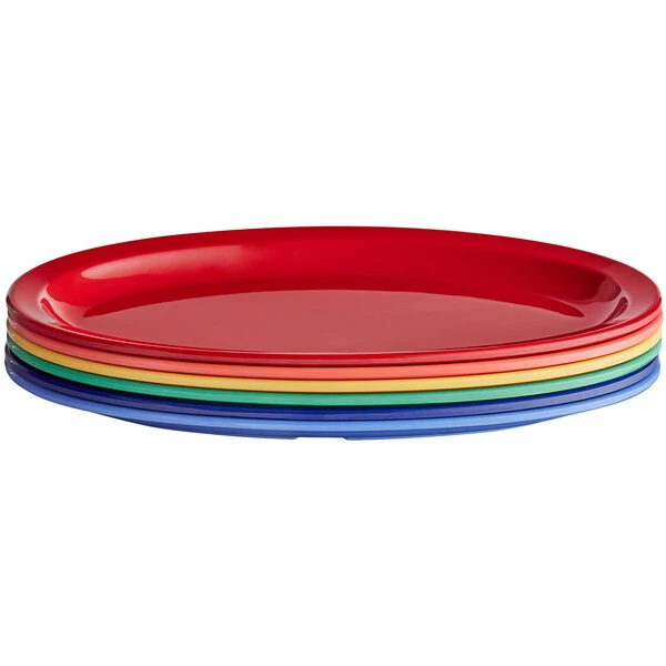 Acopa Foundations 12 3/4″ X 8 1/2″ Assorted Colors Narrow Rim Melamine Oval Platter – 72/Case
