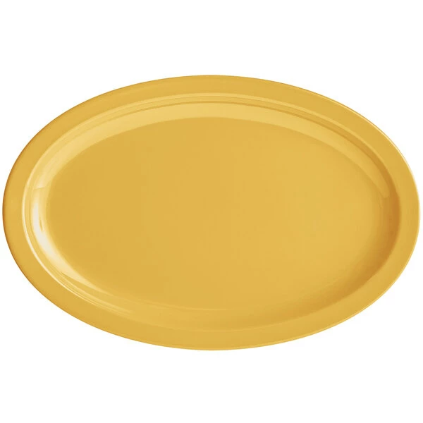 Acopa Foundations 12 3/4″ X 8 1/2″ Yellow Narrow Rim Melamine Oval Platter – 12/Case
