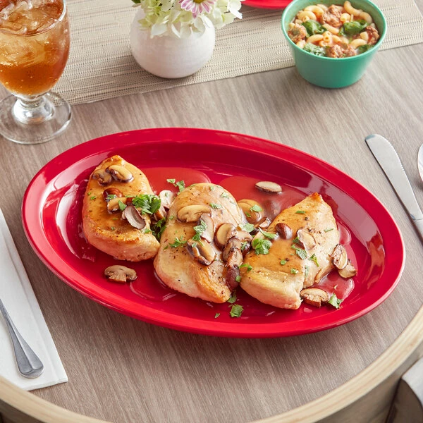 Acopa Foundations 13 1/4″ X 9 1/2″ Red Narrow Rim Melamine Oval Platter – 12/Case