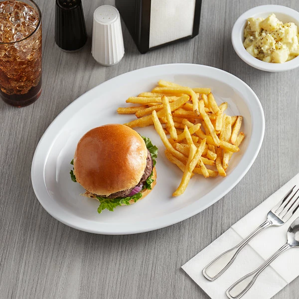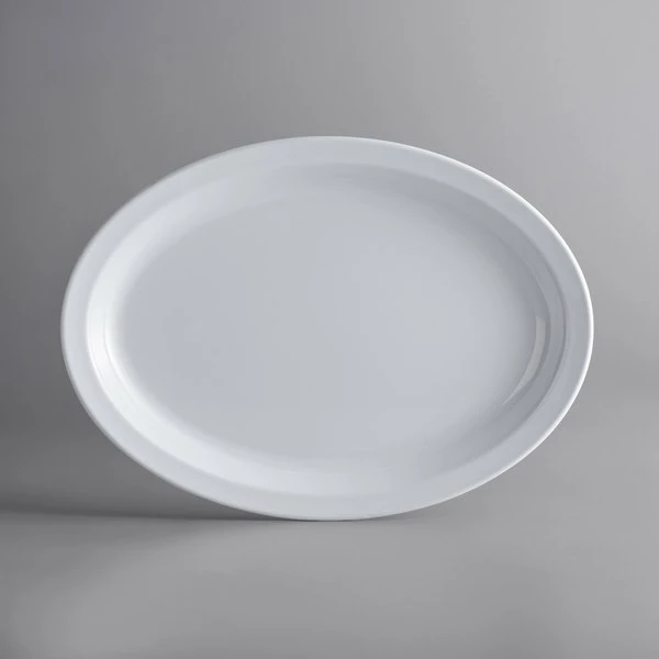 Acopa Foundations 13 1/4″ X 9 1/2″ White Narrow Rim Melamine Oval Platter – 12/Case