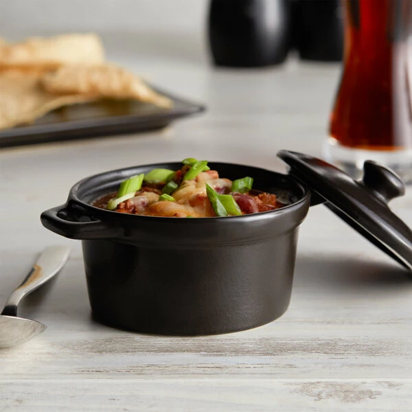 Acopa Keystone 8 Oz. Caldera Stoneware Mini Casserole Dish With Lid – 6/Case