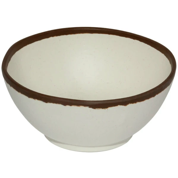 GET Enterprises GET B-302-CRM Pottery Market 24 Oz. Glazed Cream Melamine Bowl With Brown Trim – 12/Case