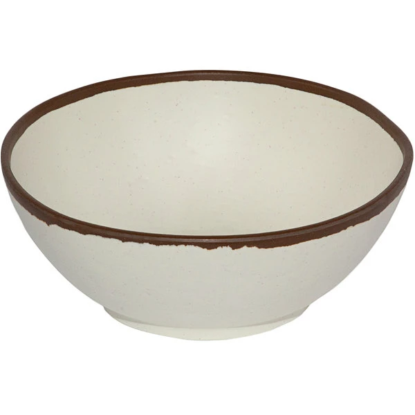 GET Enterprises GET B-305-CRM Pottery Market 1.5 Qt. Glazed Cream Melamine Bowl With Brown Trim – 12/Case