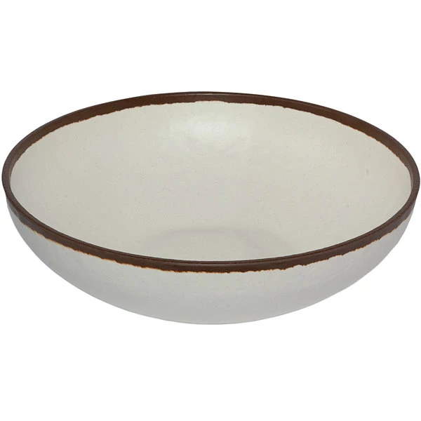 GET Enterprises GET B-320-CRM Pottery Market 4 Qt. Glazed Cream Melamine Bowl With Brown Trim – 3/Case