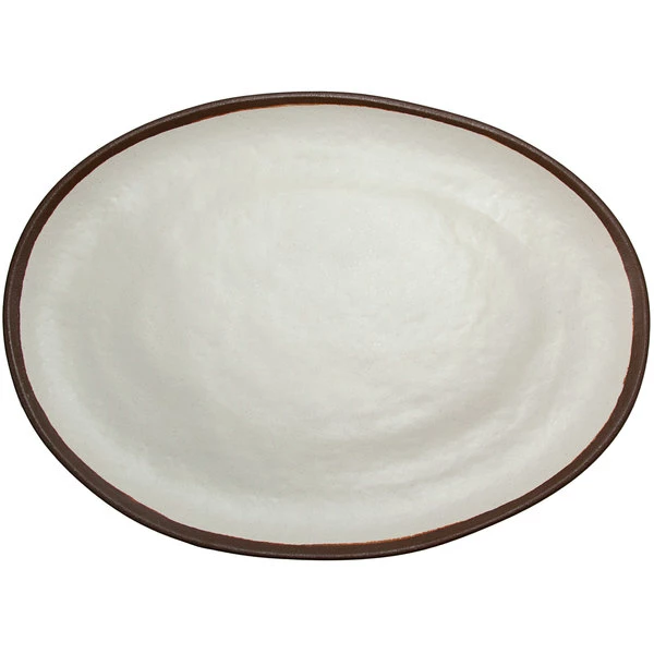 GET Enterprises GET P-183-CRM Pottery Market 18″ X 13″ Glazed Oval Cream Melamine Coupe Platter With Brown Trim – 3/Case