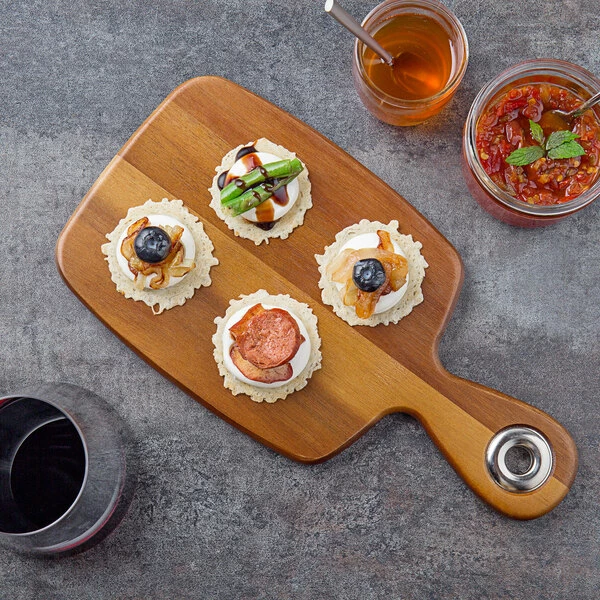 Tablecraft 10077 Industrial 12 1/8″ X 7 1/4″ Rectangular Acacia Wood Serving Board With Handle