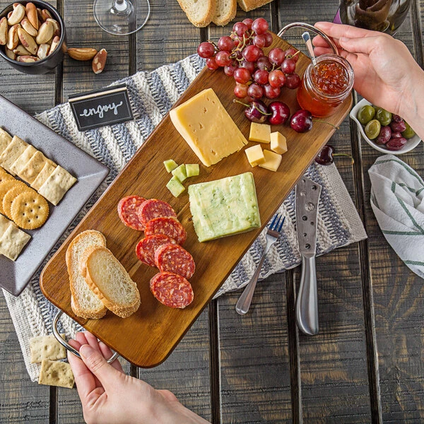 Tablecraft ACAMR2007 Acacia Wood Rectangular Display Board With Brushed Nickel Handles – 17″ X 7″ X 5/8″